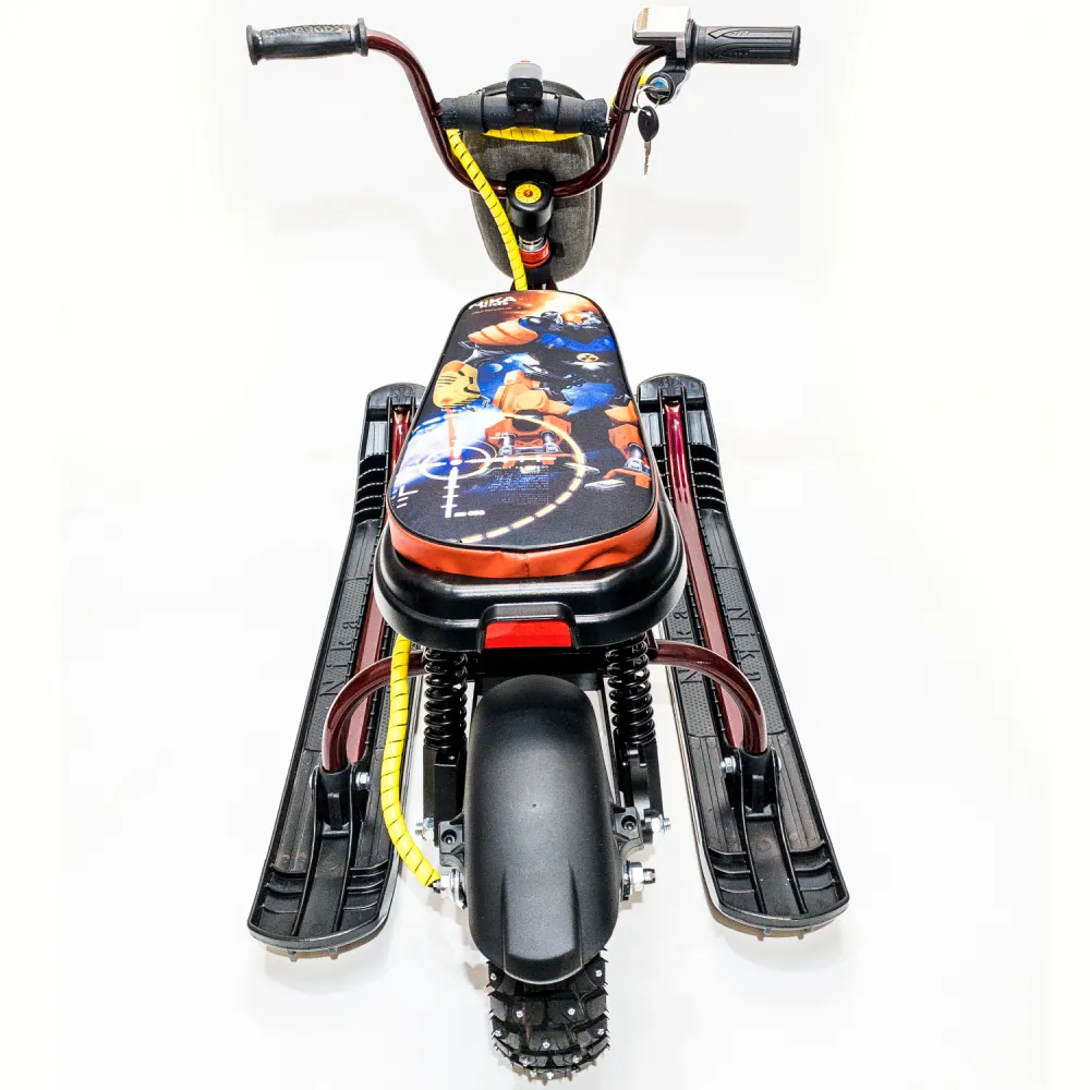 При мощности электромотора в 400 Вт способен разогнаться до 20 км/час. Зарядки батареи хватает на 2-3 часа или дистанцию до 15 км пути. При весе 14 кг электроснегокат способен выдержать нагрузку взрослого пользователя до 100 кг. Модель оснащена компактными эргономичными лыжами и фирменной тормозной системой, благодаря которым даже при максимальном разгоне производитель гарантирует высокую степень безопасности, минимальные риски заносов. Для заказа модели по разумной цене сейчас предлагаем позвонить оператору нашего интернет-магазина.