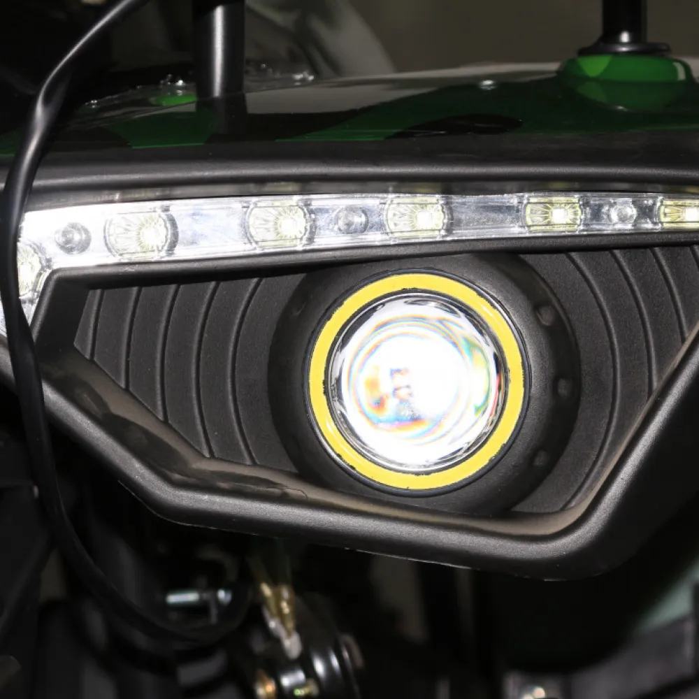 Модель выглядит круто, воинственно, моментально привлекает внимание других участников движения. Вместительное сиденье, удобная рулевая часть, возможность отслеживания скоростных показателей, степени зарядки батареи и других параметров увеличивает степень комфорта, исключает непредвиденные ситуации в пути. При мощности электродвигателя в 1500 Вт модель развивает скорость до 40 км/час. При пониженной передаче техника может становиться на дыбы. Большие легко сцепляемые с поверхностями колеса способны преодолевать препятствия. Наличие большой светодиодной фары допускает эксплуатацию тс в любое время суток и непогоду. Для оформления заказа предлагаем сделать телефонный звонок менеджеру или оставить заявку на нашем официальном сайте.