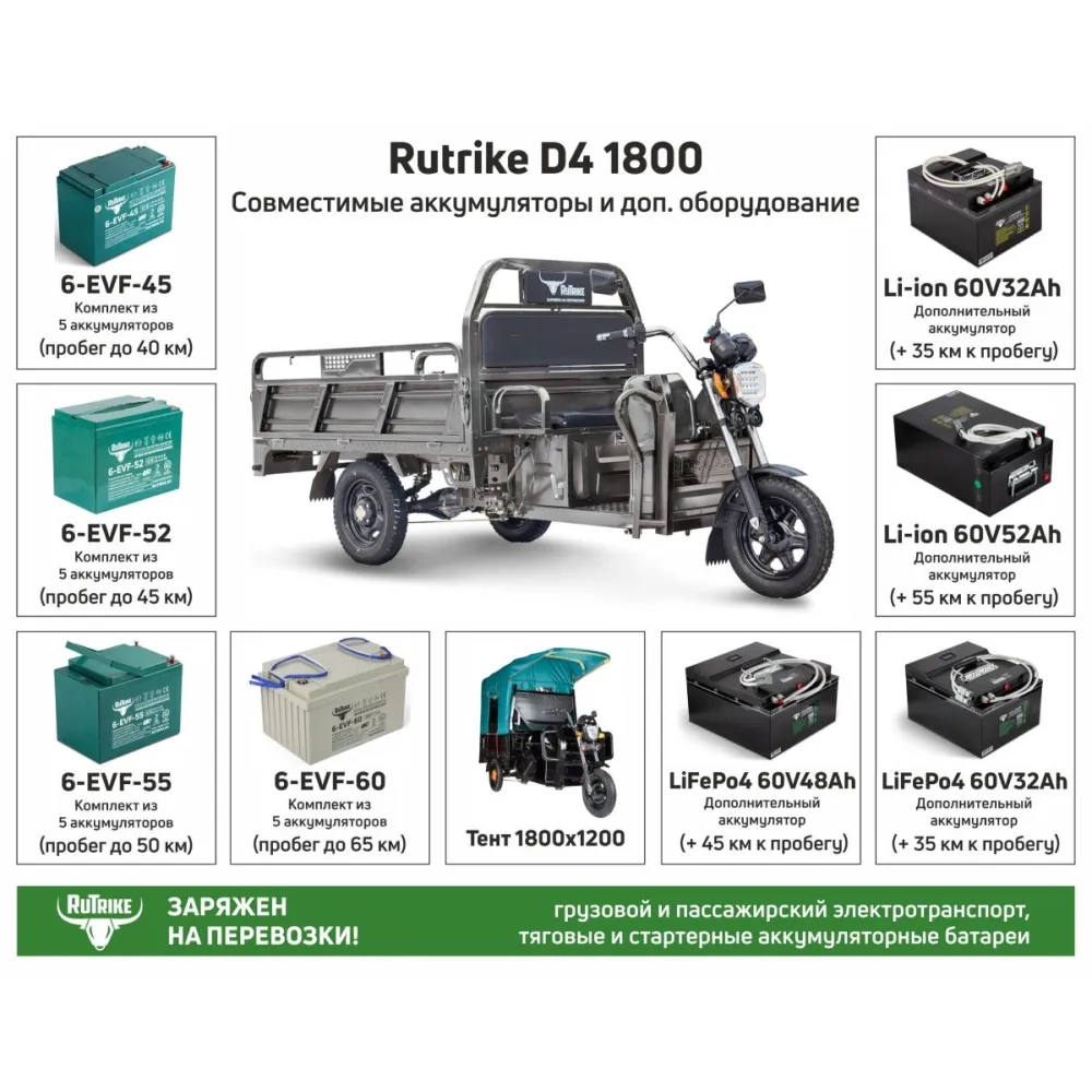​Вариант 3:Тяговый аккумулятор RuTrike 6-EVF-60 (12V60A/H C3)