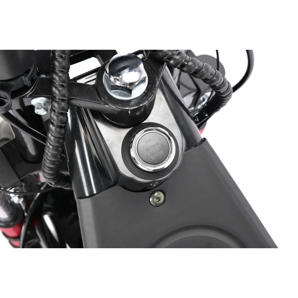 Конструкция выдерживает до 200 кг за счет прочного материала и широкой подножки. Быстро тормозит на любой дороге из-за задних гидравлических и передних дисковых тормозов. Система амортизации усилена по сравнению с прошлыми моделями этой серии. Поэтому дорога становится более комфортной.