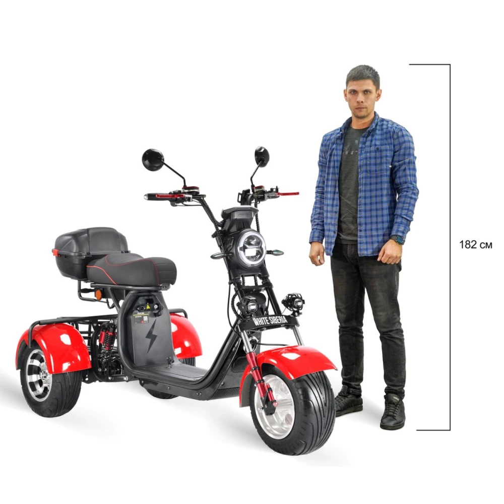 Трехколесный электроскутер CityCoco WHITE SIBERIA pro 3000W TRIKE+ красный