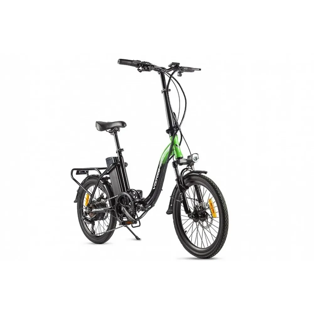 Велогибрид VOLTECO FLEX – складной вариант электровелосипеда для которого всегда найдется место в доме. Легкий по весу транспорт предназначен для езды по городской и загородной местности. Велик легко управляется, прост в обслуживании. Имеет длительный срок службы, не ломается благодаря оригинальной технической новинки. На этапе изготовления производитель позаботился о защите электровелосипеда, удобстве и безопасности ездока.  Предлагаемая нашим магазином модель в черно-зеленых цветовых оттенках выглядит стильно и современно. Из технических преимуществ стоит отметить следующие: