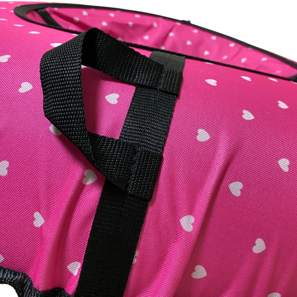 Тюбинг ПОКАТУШКИ диаметром 0,95 метра — это отличный способ добавить ярких эмоций в ваши зимние развлечения! С нежным дизайном в виде сердечек, этот тюбинг станет настоящим украшением зимних забав и поднимет настроение не только вам, но и окружающим. Прочные эргономичные ручки обеспечивают надежный захват, позволяя вам уверенно спускаться с горок и наслаждаться каждым моментом. С весом всего 2,1 кг, он легок для транспортировки и хранения, а буксировочный ремень упрощает процесс передвижения по снегу. Этот тюбинг идеально подходит для катания с друзьями и семьей, создавая незабываемые воспоминания и радость от совместного отдыха. Подарите себе и своим близким удовольствие от зимних приключений с тюбингом ПОКАТУШКИ!