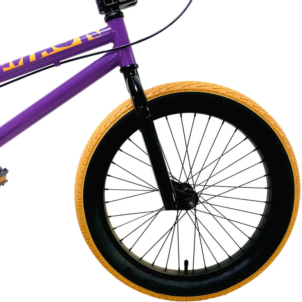20-дюймовая колесная часть оснащена надежными покрышками, отлично сцепляемыми с разными поверхностями, накатистыми и послушными. В совокупности с другими элементами управления райдер может рассчитывать на максимальный разгон, что важно для качественных прыжков. Торможение проводится с помощью брендовых тормозов. Основной рычаг управления размещен на видимой часть руля.